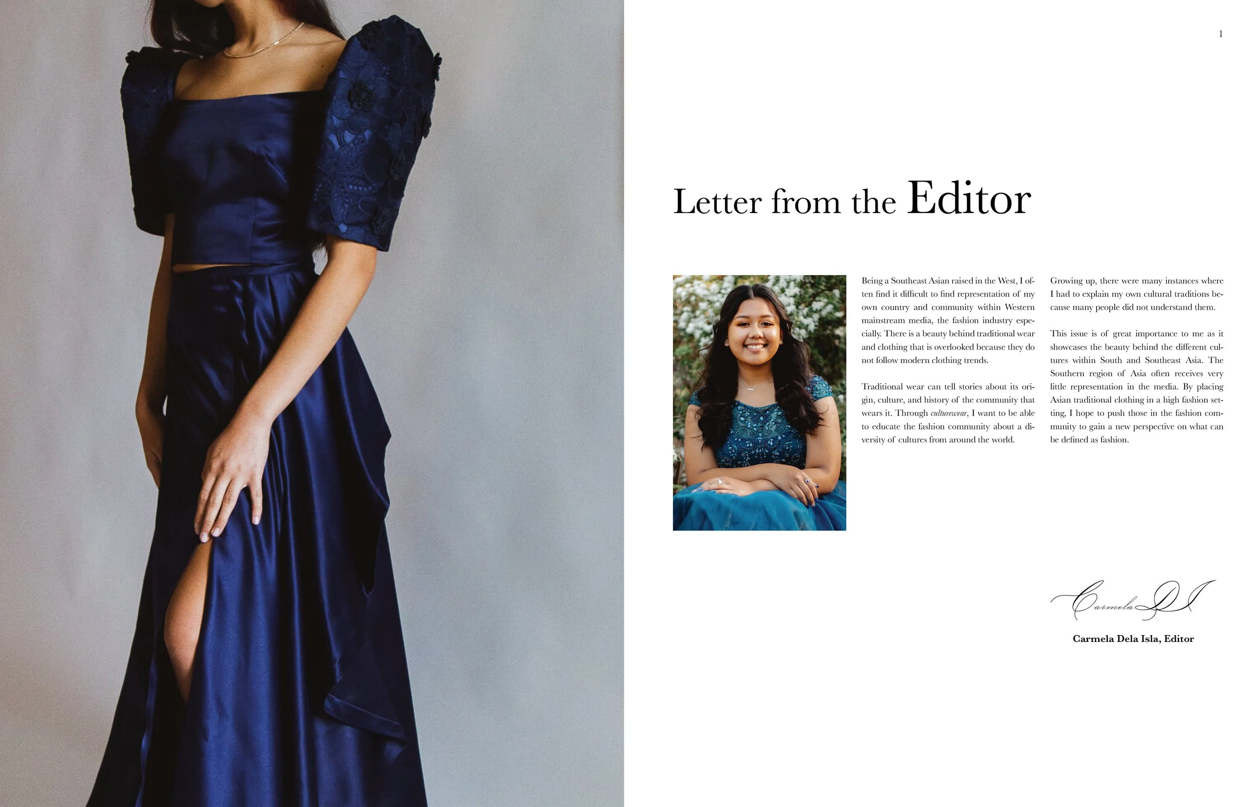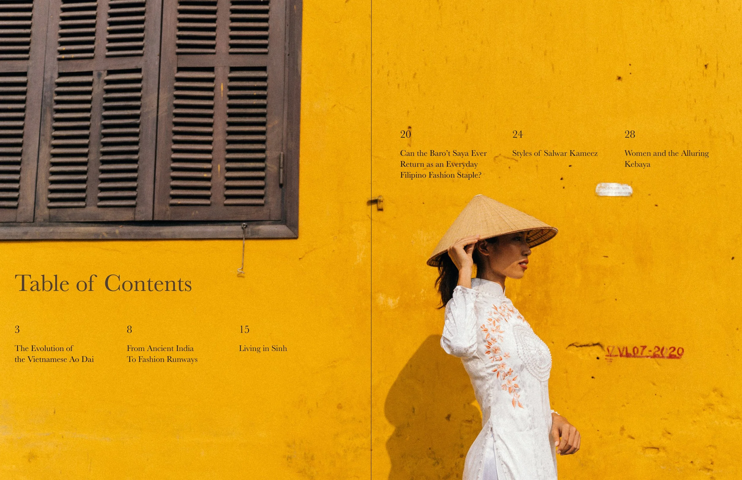 Project Description: culturewear is an inclusive fashion magazine dedicated to traditional clothing from around the world. This particular issue showcases traditional dresses found in South and Southeast Asia, including the Philippines, Vietnam, India, and Thailand.
